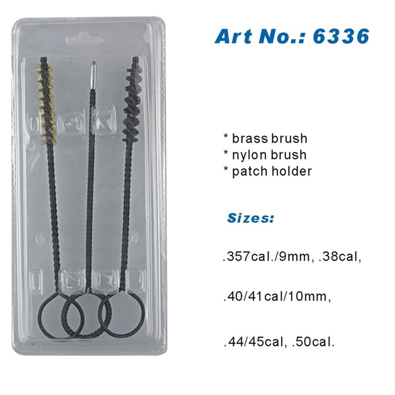 3 পিসি সেট হ্যান্ডগান ক্লিনিং কিট, ডবল ব্লিস্টারে প্যাক করা। একটি ব্রাস বোর ক্লিনিং ব্রাশ, একটি নাইলন বোর ক্লিনিং ব্রাশ এবং একটি স্লটেড প্যাচ হোল্ডার। সহজ এবং কার্যকর.