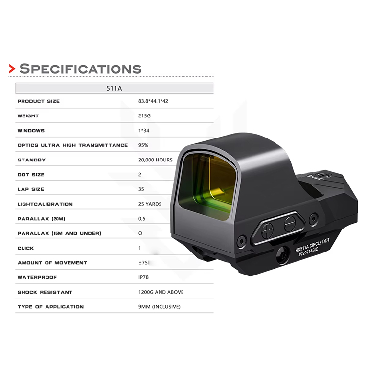 HD511A কমপ্যাক্ট অপটিক্যাল হান্টিং রেড ডট সাইট বড় পরিমাণে পাইকারি ক্রয়ের জন্য উপলব্ধ
