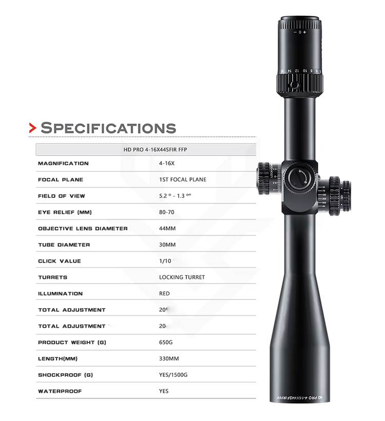 অপটিক্স এইচডি প্রো 4-16X44 এসএফআইআর এফএফপি হাই শক রেজিস্ট্যান্স হান্টিং স্কোপ ট্যাকটিক্যাল লং রেঞ্জ শুটিং 30 মিমি টিউব