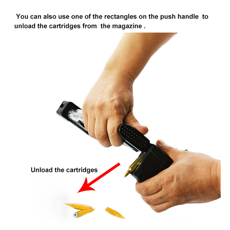 ● খাঁজে পূর্ণ কার্তুজগুলি পূরণ করুন, AR যান্ত্রিক নীতির মতো ম্যাগাজিনটি ইনস্টল করুন। pusher ধাক্কা, কার্তুজ সহজেই ম্যাগাজিনে প্রবেশ করবে.