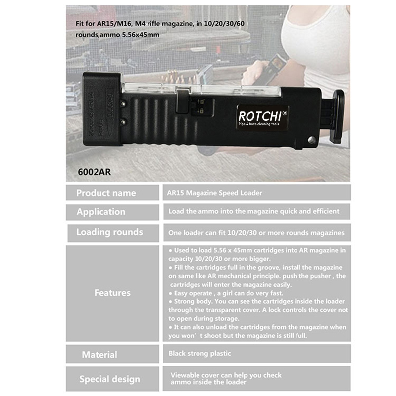 ● 10/20/30 বা তার বেশি ধারণক্ষমতার AR ম্যাগাজিনে 5.56 x 45mm কার্টিজ লোড করতে ব্যবহৃত হয়।