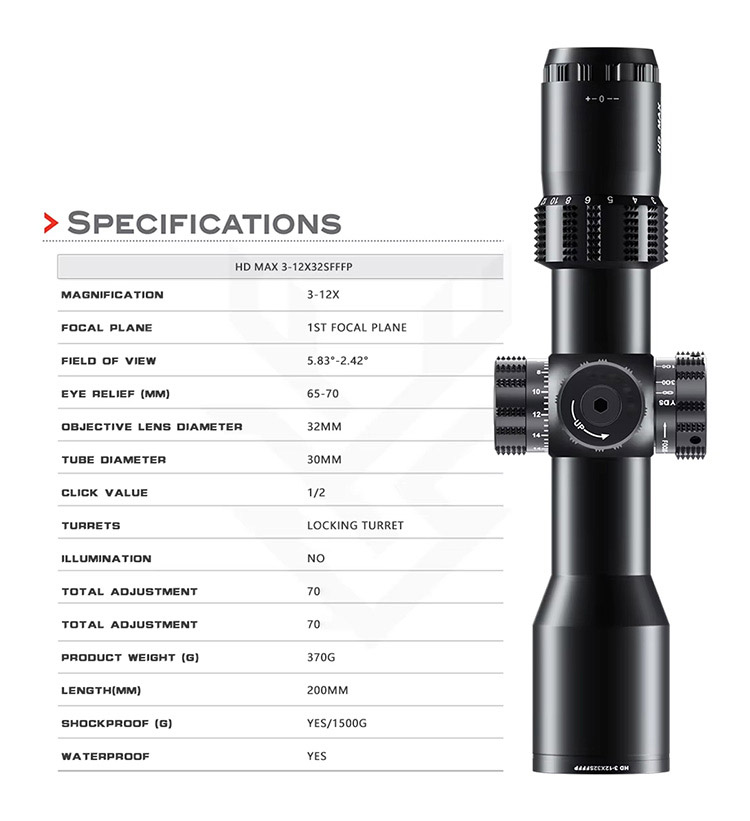MAX 3-12X32SF FFP HD হাই লেন্স হান্টিং মনোকুলার টেলিস্কোপ পাইকারি