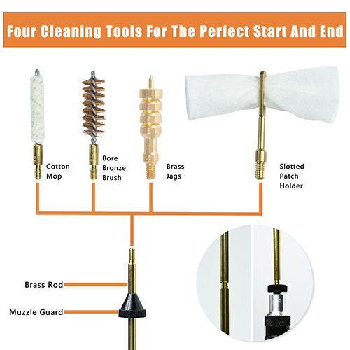 বন্দুক পরিষ্কারের কিট বোর ব্রোঞ্জ ব্রাশ স্বচ্ছ কমলা স্ট্রং কেস