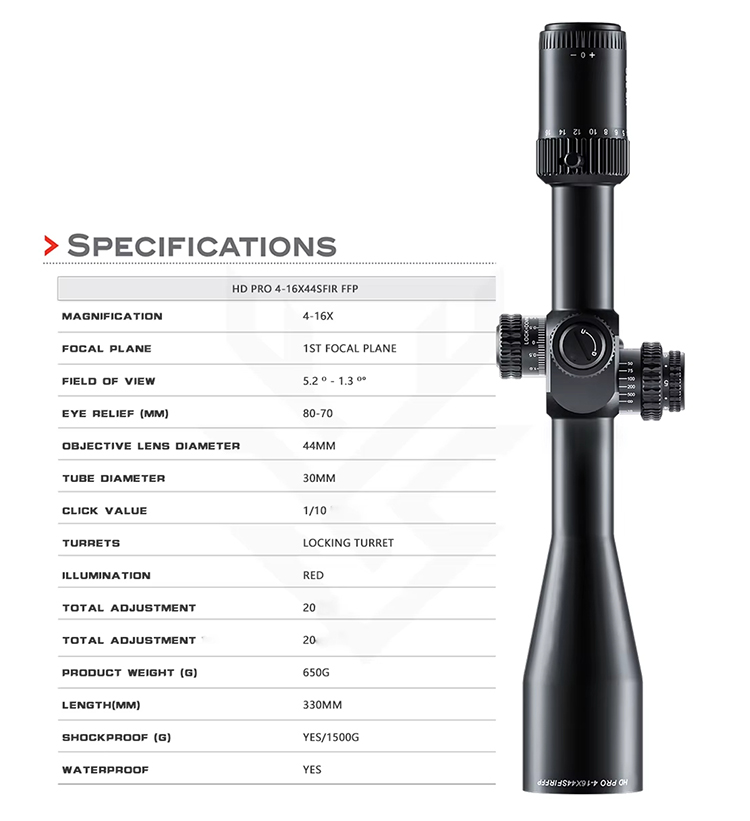 অপটিক্স এইচডি প্রো 4-16X44 এসএফআইআর এফএফপি হাই শক রেজিস্ট্যান্স হান্টিং স্কোপ ট্যাকটিক্যাল লং রেঞ্জ শুটিং 30 মিমি টিউব