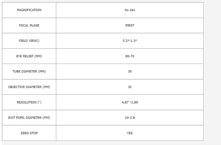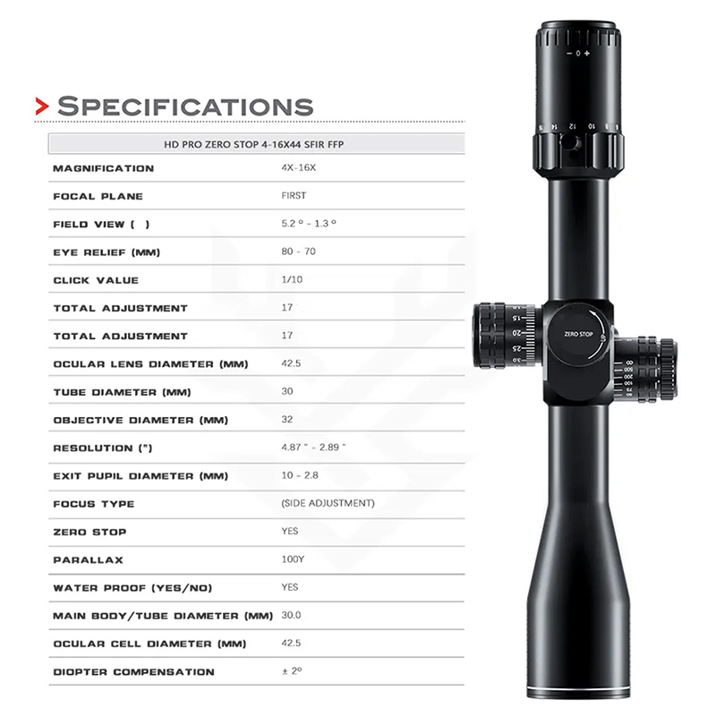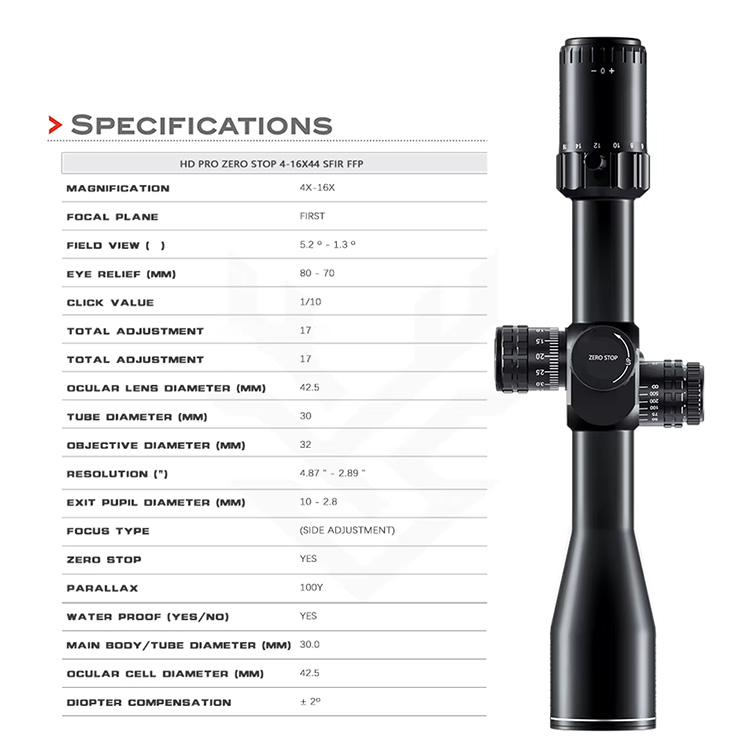 অপটিক্স এইচডি প্রো জিরো স্টপ 4-16x44 SFIR FFP হাই শক রেজিস্ট্যান্স হান্টিং